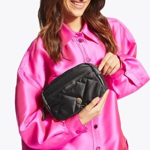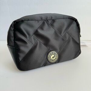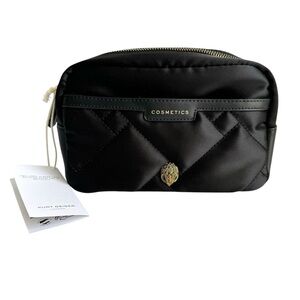 NWT Kurt Geiger Cosmetic Pouch Black Quilted Nylon Makeup Bag Recycled Nylon Leather NEW