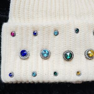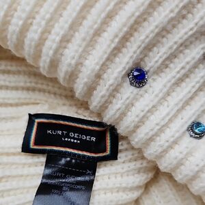 Kurt Geiger Cream Knit Beanie with Rhinestone Accents NWT