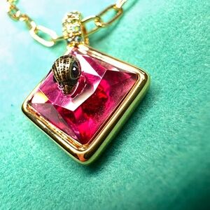 Kurt Geiger London's Eagle Head Crystal Pendant Necklace highlights exquisite craftsmanship with vibrant pink crystals on gold tone.