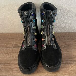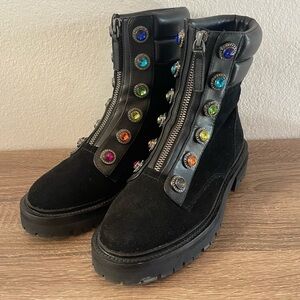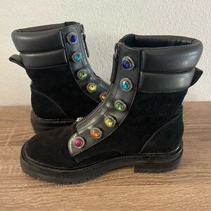 Kurt Geiger Embellished Rainbow Bobby Zip-Up Ankle Combat Boots, Size 36 (6)