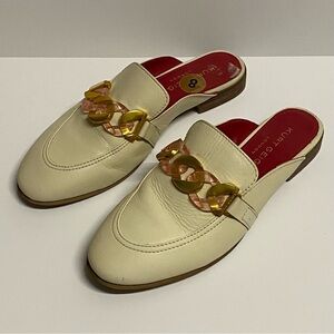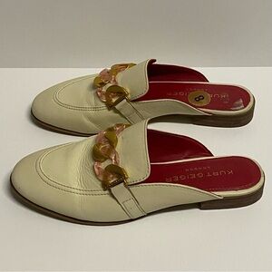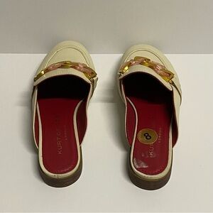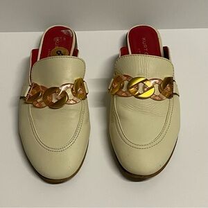 Kurt Geiger Kai Apron-Toe Loafer Mules Backless Leather Chain Loafers in Bone. Size EU38/US7.5.