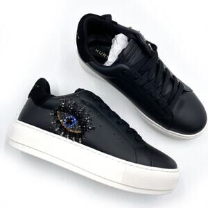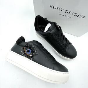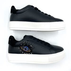 Kurt Geiger Laney Eye Sneaker Platform Black Leather Rhinestone Lace Up Sz 8