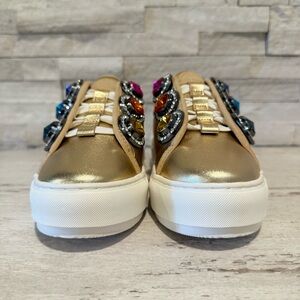 Kurt Geiger Laney Gold Octavia Jewel Studded Embellished Platform Sneakers 36.5
