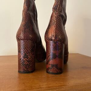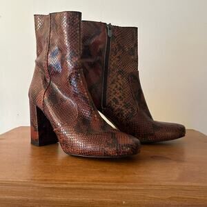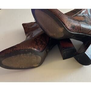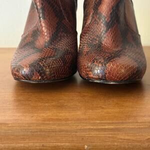 Kurt Geiger Leather Snakeskin Boots Womens Size 8.5 Brown Heel Ankle Booties