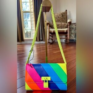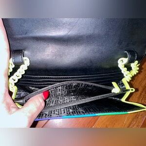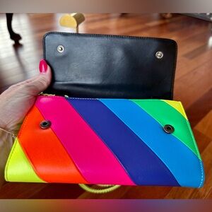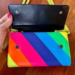 Kurt Geiger vibrant neon leather handbag with detachable crossbody chain that can also be used as a shoulder bag or wallet/clutch. In excellent condition. NWOT