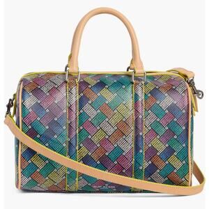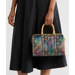 A prismatic print enlivens the retro-inspired design of a spacious barrel-shaped satchel outfitted with an optional shoulder strap for easy hands-free wear.