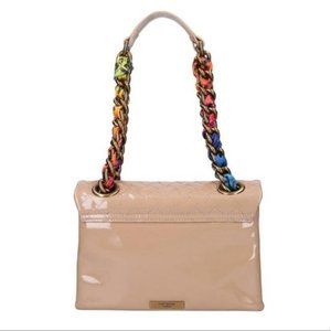 Kurt Geiger London Camel Large Quilted Scarf Chain Nude Patent Leather Shoulder