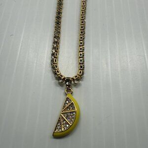 Kurt Geiger London Gold Rhinestone Lemon Slice Pendant Statement Necklace NWT