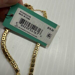 Add a bold, playful touch to your jewelry collection with this Kurt Geiger London Gold Crystal Lemon Slice Pendant Necklace. Originally retailing for $78, this stunning piece features a sparkling lemon slice charm encrusted with rhinestones, hanging from a chic gold-tone crystal-set chain. Perfect for summer outfits, brunch looks, vacation wear, or adding a vibrant pop to any ensemble.