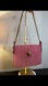 Stylish pink beaded design. Features a gold chain strap. Perfect for any occasion.