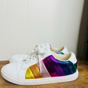 Kurt Geiger London Lane Stripe Sneakers Metallic Multi Rainbow 36 Women's 5 NEW