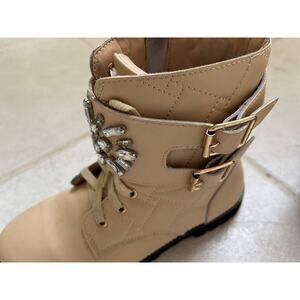 Kurt Geiger London "Little Girls" Winter Boots size 3.5. Smooth suede/leather upper with quilted side panel. Soft fabric lining, lace closure with jewel-studded buckle strip, side zipper for easy pull on and pull off, cushioned foot bed for lasting comfort, studded welt detail, durable rubber lug sole to deliver reliable traction. Hardly worn.