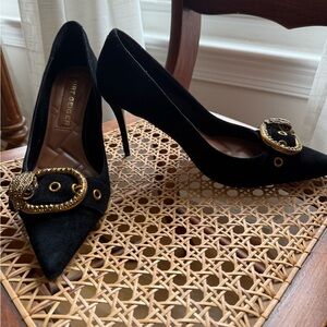 Kurt Geiger London Mayfair Black Suede Heels with Gold Embellishment