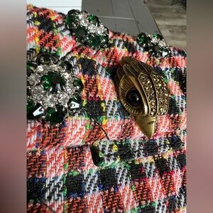 Stylish plaid bag with a gold chain strap. Perfect for adding a pop of color to any outfit.