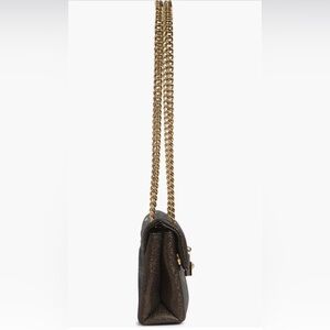 This stylish shoulder bag features a shimmering gold design, perfect for any occasion. The elegant chain strap adds a touch of sophistication. New with tags and dust bag. Gorgeous rainbow gold metallic material. Convertible crossbody bag. Brass toned hardware. Please see attached pictures for more product details. Contact me with any questions. Also catch my show for great deals, low starts, and fun giveaways!
