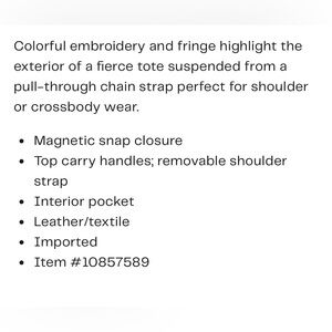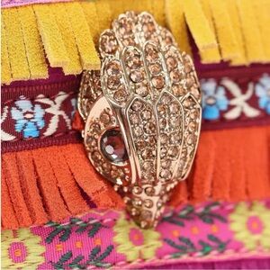 Vibrant and stylish handbag featuring a mix of colors. Perfect for adding a pop of color to any outfit. Sold out! New with tags and the dust bag. Adjustable Crossbody strap. Gorgeous color way throughout. Can be worn year-round dressy or casually. Very intricate design. Please see attached pictures for more product details. Contact me with any questions. Also catch my show for great deals, low starts, and fun giveaways!