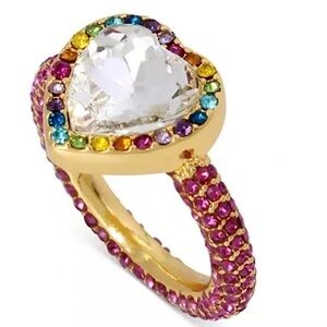 Kurt Geiger London Rainbow Crystal Heart Cocktail Ring New