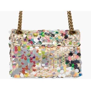Colorful paillette sequins catch the light on this stunning crossbody bag fashioned with signature eagle's-head hardware and convertible chain straps.