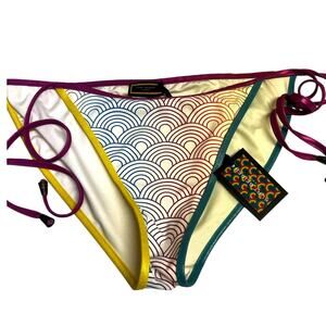 The Southbank Bikini Bottoms feature all over ombre Rainbow print. The sides are tied with antiqued brass branded aglets.