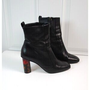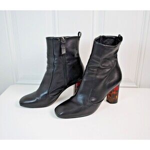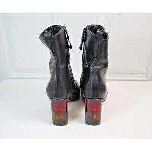 Kurt Geiger London Stride Black Leather Tortoise Lucite Heel Booties Size 9.5 US