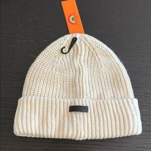 Chic cream knit hat adorned with pink embellishments. Perfect for stylish flair.