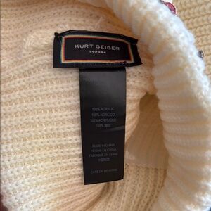 Kurt Geiger London Women’s Cream Knit Hat with Pink Crystal Embellishments