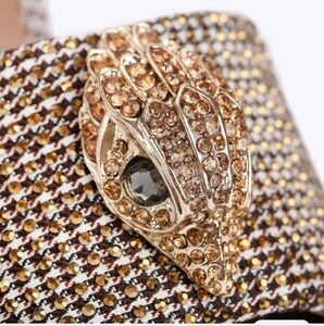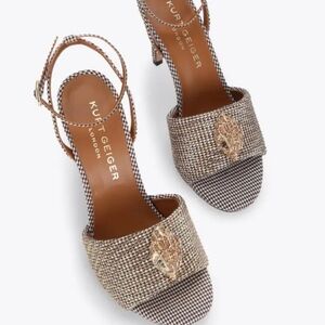 Kurt Geiger London kensington houndstooth brass crystal eagle head brooch heels size US9/EU40 new