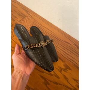 Kurt Geiger London Chelsea Leather Stud Embellished Chain Hardware Mules size 41