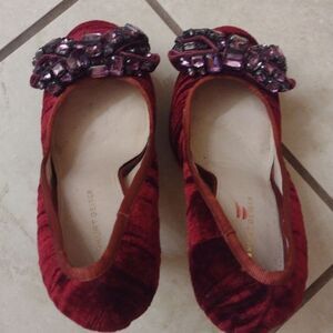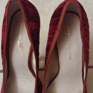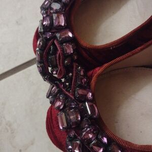 Kurt Geiger London Red Velvet platform pumps with purple rhinestone bows. Excellent used condition please see all pictures. European size 37 US size 6.5 equivalent (please see measurements pictures for heel and platform height)
