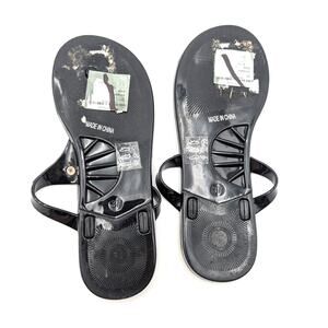 Kurt Geiger Maddison T-Bar Thong Sandals Women's Black/Gold Size US7M EU37