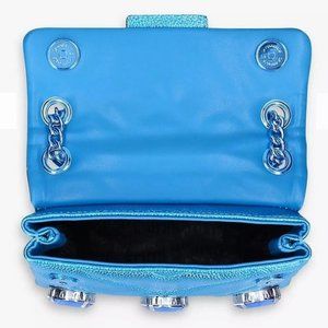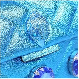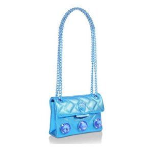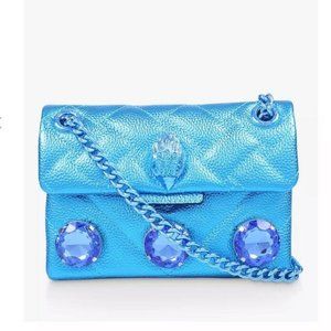 Kurt Geiger Mini Kensington Drench Gem Bag Quilted Leather Metallic Blue NWT