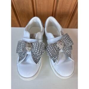 Kurt Geiger Mini Laney Bow Crystal Girls Shoes Velcro Slip On (Includes dust bag )