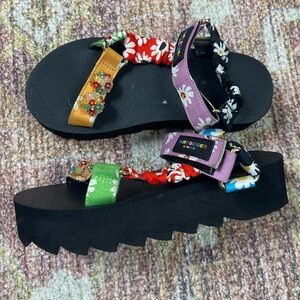 Kurt Geiger Mini Orion Platform Sandals Printed Straps Girls Size 3