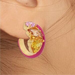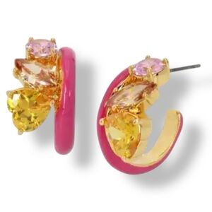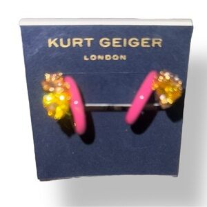 NWT Add a touch of elegance with these stunning pink and gold gemstone earrings. Kurt Geiger bringing us a trio of mixed cut and color CZ stones that give a sparkling appeal to these pink enamel hoop earrings!