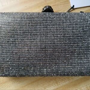 Kurt Geiger NWT Silver Rhinestone Clutch/ Crossbody With Dustbag. this bag is stunning and could easily be dressed up or down. it's a silver with Gunmetal clutch and it comes with a 22 inch chain to make it a crossbody or shoulder bag. it has a strong closure and can fit a phone. it meaures 8 by 5 inches and has tags, box and dustbag