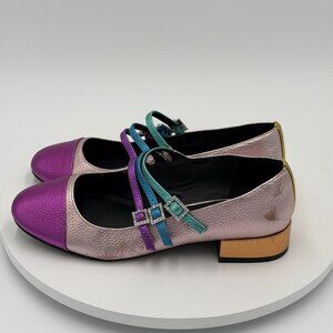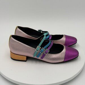 Kurt Geiger Pierra Multicolor Rainbow Leather Metallic Mary Jane Heels US 6.5