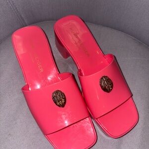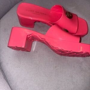 Kurt Geiger Pink Slide Sandals with Gold Emblem
