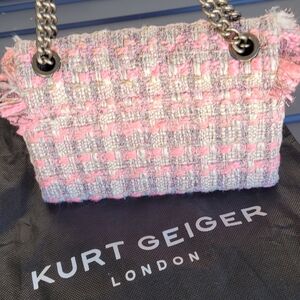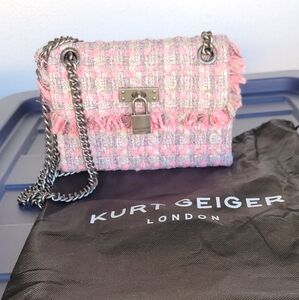 Elevate your style with the Kurt Geiger Pink Tweed Women's Bag. This chic accessory features a stylish pink design, perfect for any occasion. NWOT. Beautiful bag comes with dust bag. offers welcome