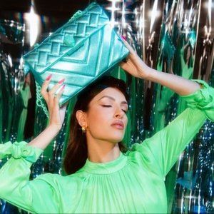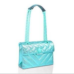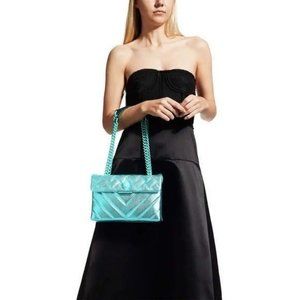 Kurt Geiger Quilted Large Kensington Drench Metallic Green Leather NWT Chain