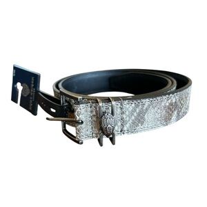 Elevate your style with this unique silver belt featured by Kurt Geiger. Perfect for adding a touch of elegance to any outfit. Brand new S/M