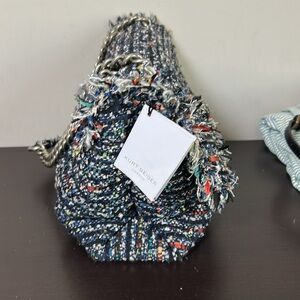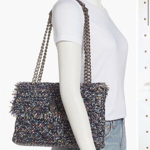 Kurt Geiger Tweed Large Kensington Bag Black Blue Shoulder Flap Closure NEW