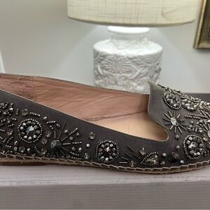 Beautiful beaded Kurt Geiger Espadrilles Grey Suede, fully beaded in excellent condition, no missing beads