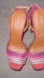 Brand new. Original ankle straps were lost so they were replaced with pink straps. Adding additional straps. No box.
