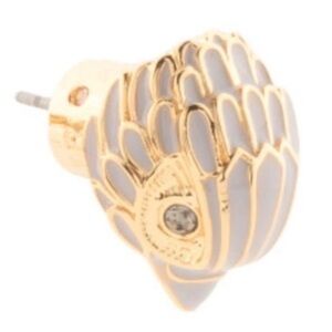 Pouch included Enamel, crystal Gold tone plated brass Post back closure Sparkling crystals highlight signature eagle's-head stud earrings done in soft lavender enamel with a shiny gold finish. 3/8"W x 5/8"L Titanium post back Silvertone plate/enamel/glass