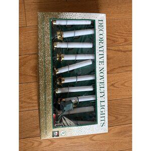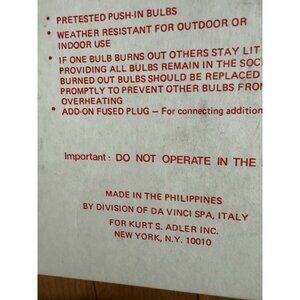 The product is a set of 10 vintage Kurt S Adler Old Fashioned Candle Lights, perfect for adding a festive touch to your Christmas decor. These medium-sized corded electric lights feature a white and gold color and are made of plastic and metal materials. With a design inspired by candlesticks, these lights are a nostalgic addition to your holiday celebrations. Made by Da Vinci Spa in Italy, these candle lights stand at 5.5 inches tall and are part of the Kurt Adler franchise, known for their quality and timeless appeal. They have been tested and are working. Thank you for viewing. (GarChr1017252PM).