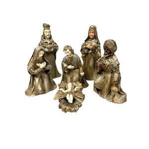Kurt S Adler Paper Mache Gold Silver 13"h 6 Pc Large Nativity Set Made in Japan