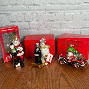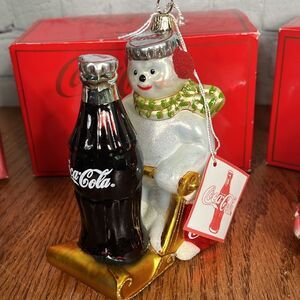 Kurt Adler Polonaise Coca Cola Polar Bear, Santa, Snowman Christmas Ornaments