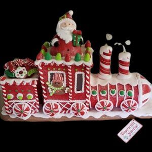 #handmade #handcrafted #Kurt #Adler #train #Christmas #clay dough #red #white #glitter #sparkle #snow #Santa #light up #timer #new #sale #deal #gift #holiday #art #artwork #beautiful #classy #classic #high-end #luxury #luxurious #candy #gingerbread #gumdrops #peppermint #candyland #candy #gingerbread #gingerbread house #Kurt adler #clay #led #red #raz #raz imports