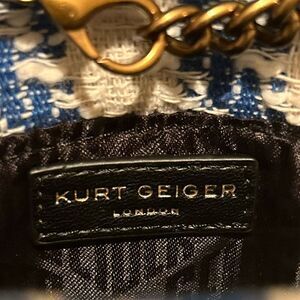 Kurt Geiger Mini Handle Kensington Bag Blue Tweed Plaid Strawberry Print Kawaii