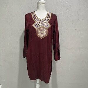 In good condition. Kurti Red Embroidered Long Top Women Size Small